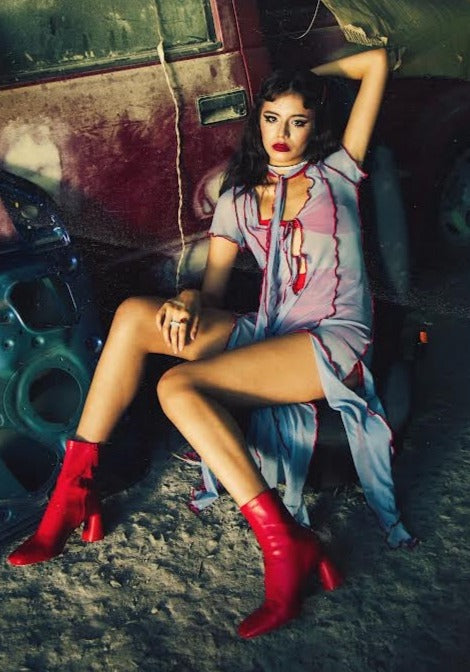 *Vestido vaporoso con costuras expuestas.